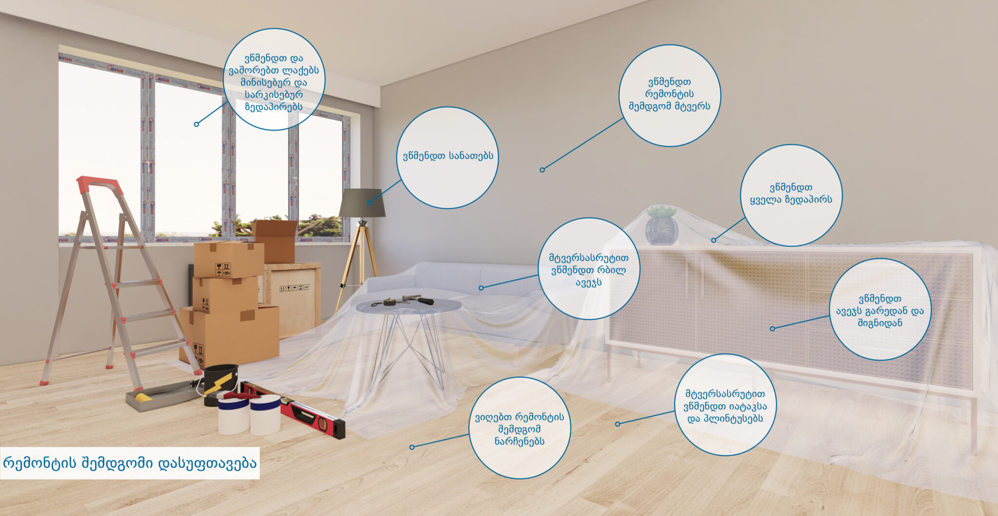 რემონტის შემდგომი დასუფთავება ჩატარდება ქვემოთ მოცემული